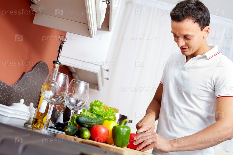Мужчина готовит еду на кухне