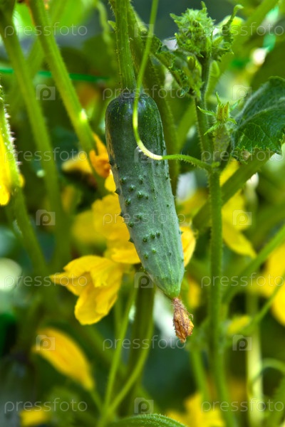 Маленький огурец с цветами и усиками