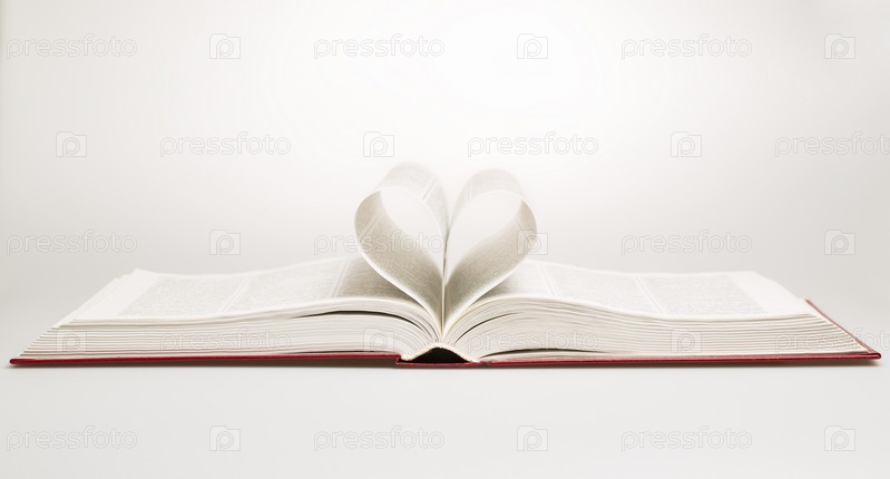 Открытая книга с листами, сложенными в форме сердца