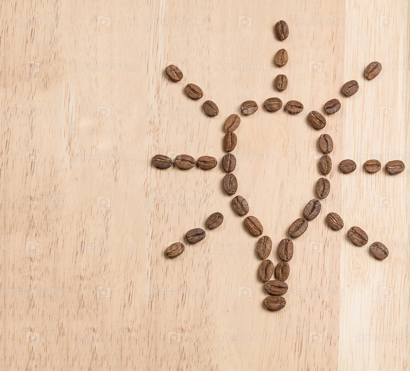 Кофейные зерна, выложенные в форме лампы