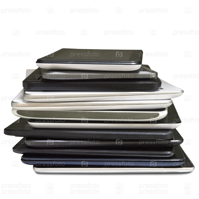 Стопка планшетов для ремонта, изолированная на белом фоне