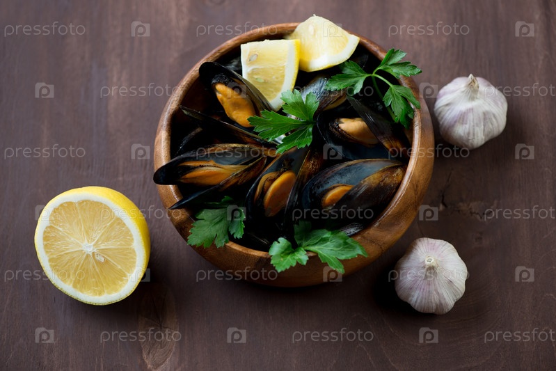 Мидии в чесночном соусе