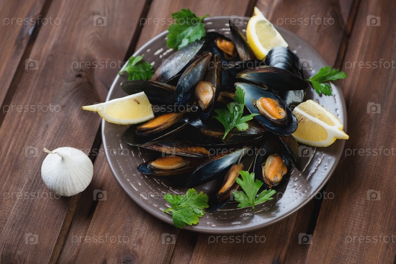 Мидии с петрушкой, лимоном и чесноком
