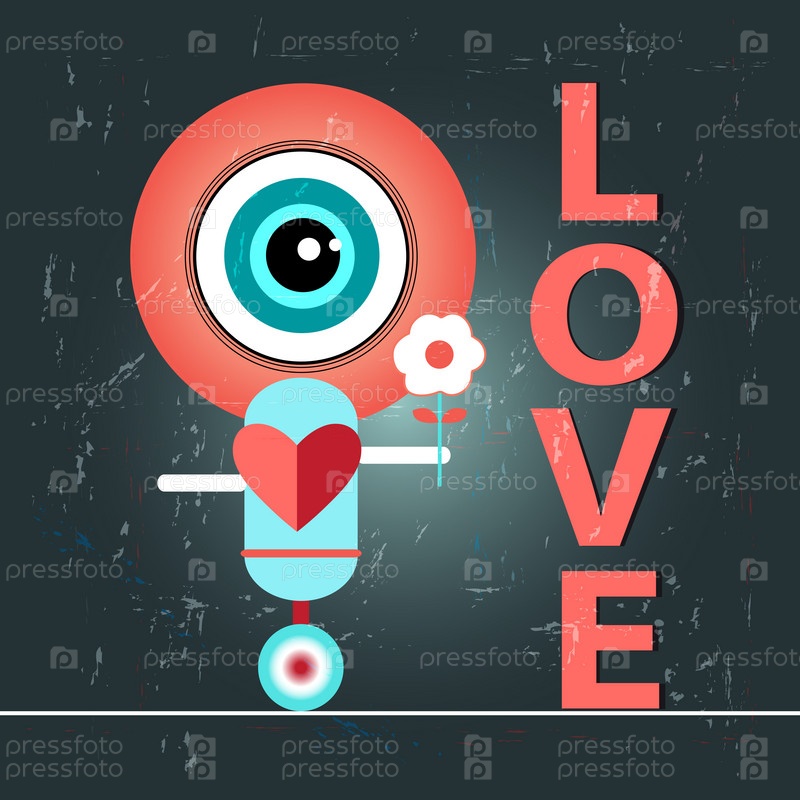 Фон с сердцами и роботом