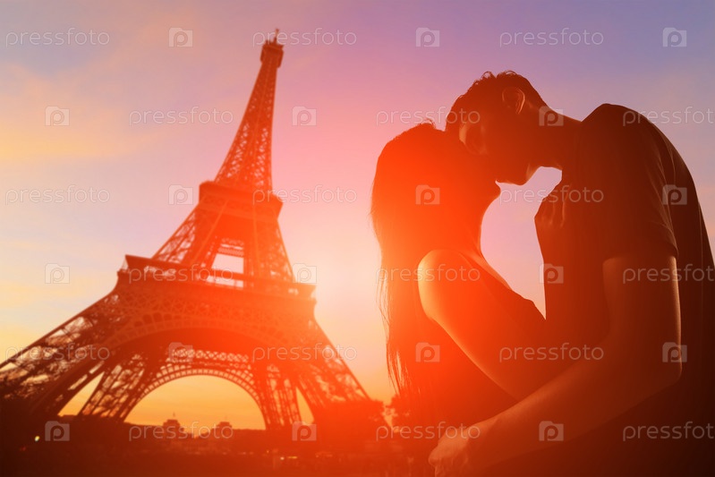 Влюбленные на фоне Эйфелевой башни