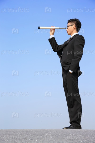 Бизнесмен смотрит в подзорную трубу