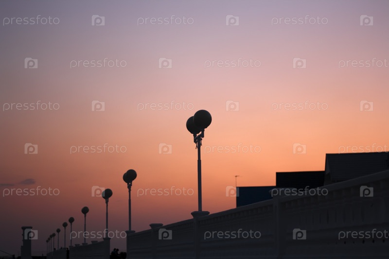 Фонарные столбы на фоне закатного неба