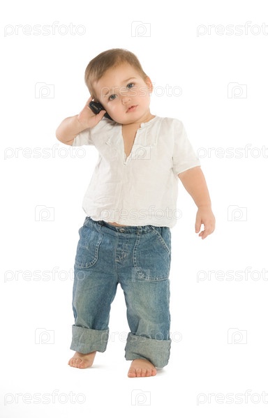 Маленький мальчик держит сотовый телефон