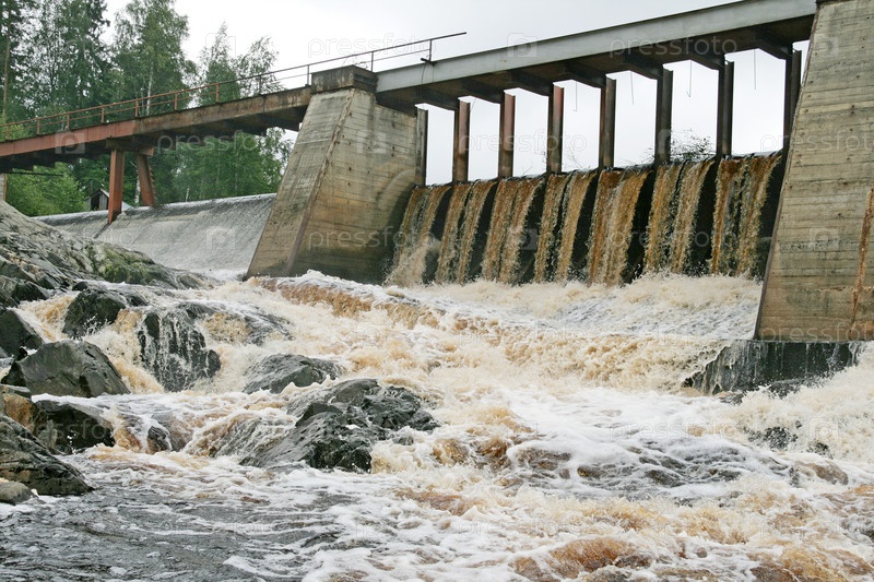 Плотина гидроэлектростанции на реке в Карелии, Россия