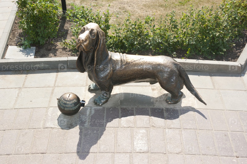 Скульптура в виде собаки с копилкой
