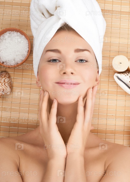 Девушка в спа-салоне с полотенцем на голове