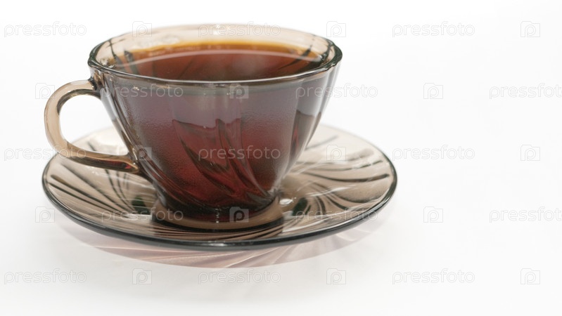 Чай в стеклянной чашке на белом фоне