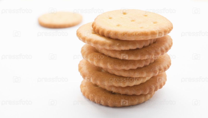 Стопка крекеров на белом фоне