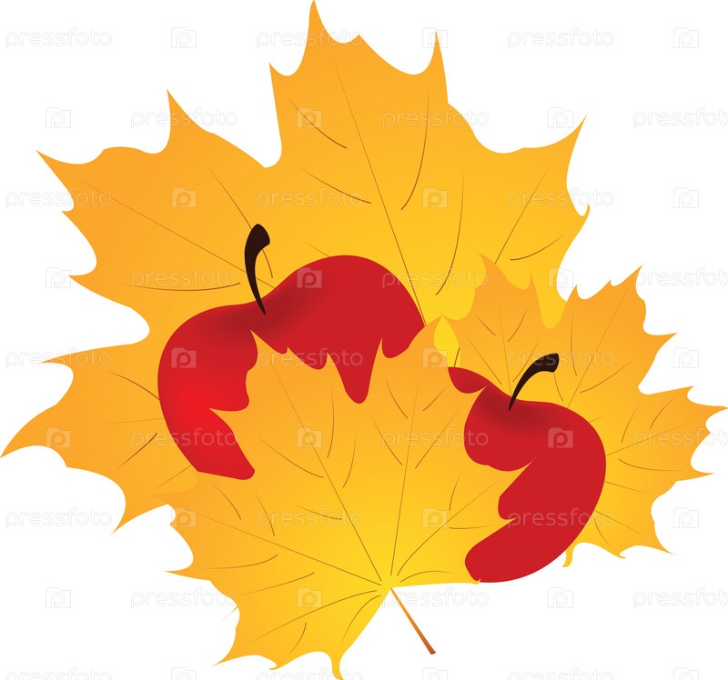 Осенний фон с листьями и яблоками