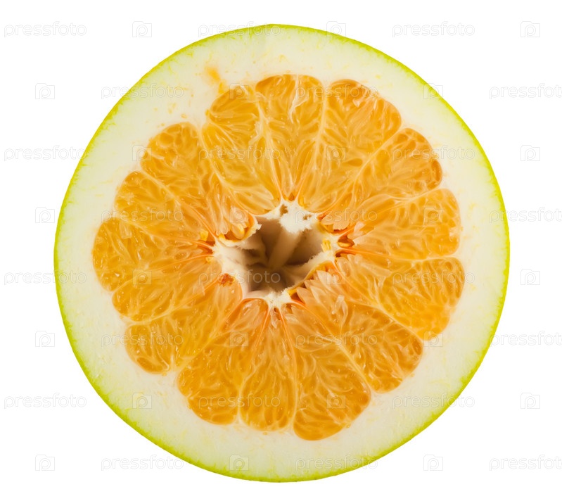 Половинка фрукта "помело" на белом фоне