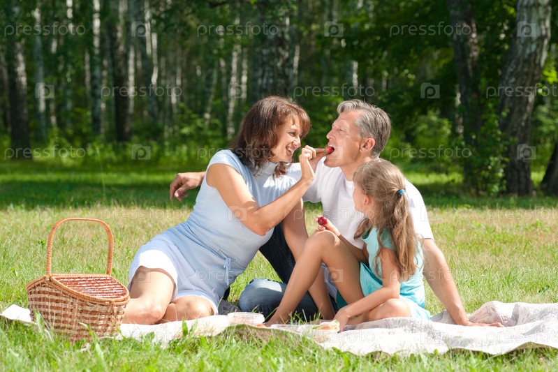 Счастливая семья на пикнике в парке