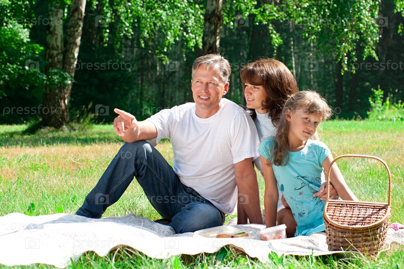 Счастливая семья на пикнике в парке