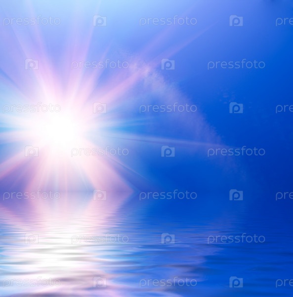 Солнце на голубом небе над водой