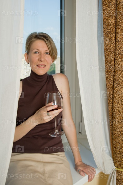 Женщина с бокалом вина у окна