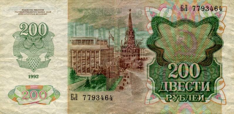 Банкнота СССР 200 рублей 1992 года оборотная сторона