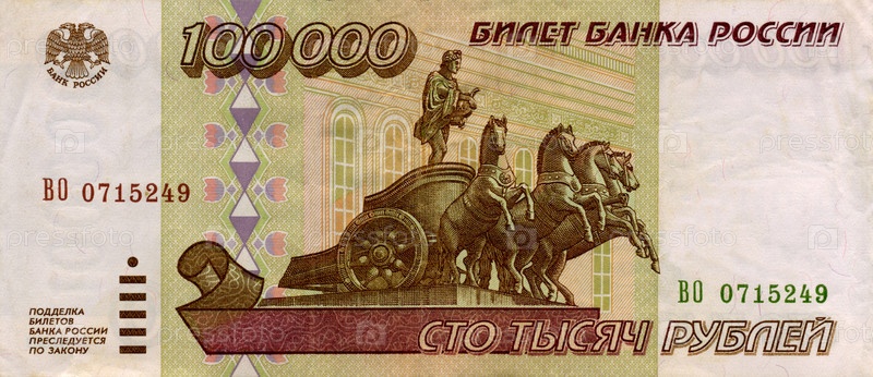 Банкнота Билет Банка России 100000 рублей 1995 года лицевая сторона