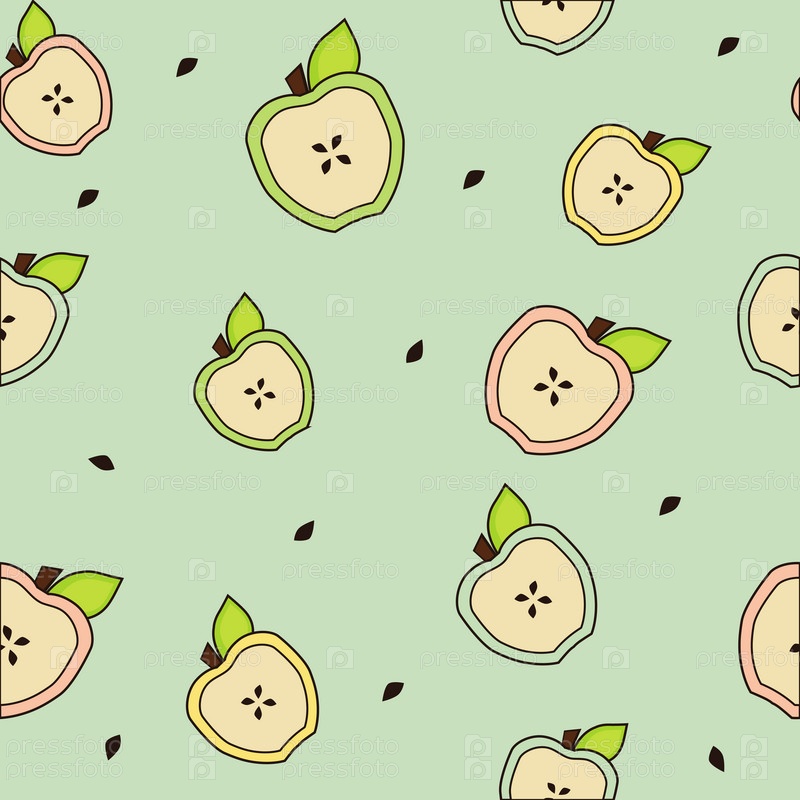 Половинки яблок с листьями и косточками