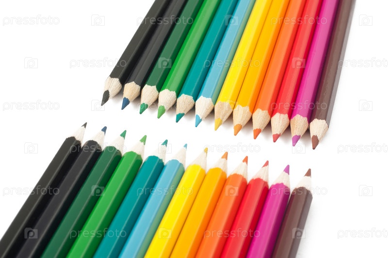Разноцветные карандаши на белом фоне