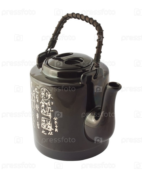 Черный китайский чайник на белом фоне