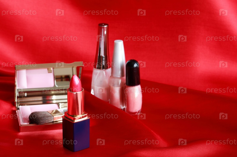 Набор косметики на красном шелке