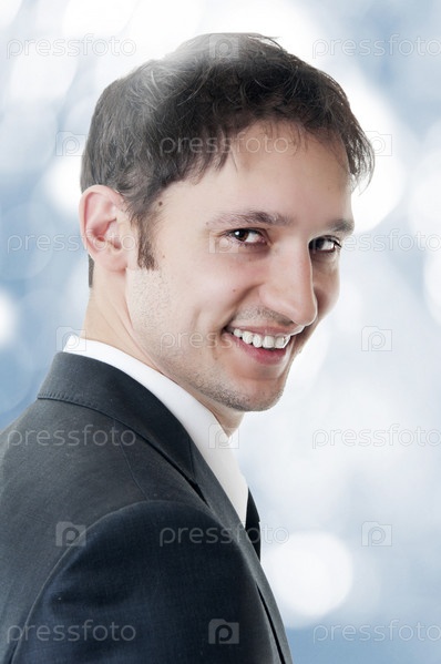 Улыбающийся деловой человек на размытом фоне