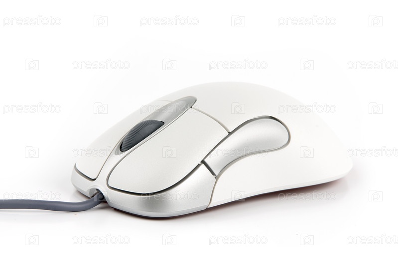 Компьютерная мышь с кабелем на белом фоне