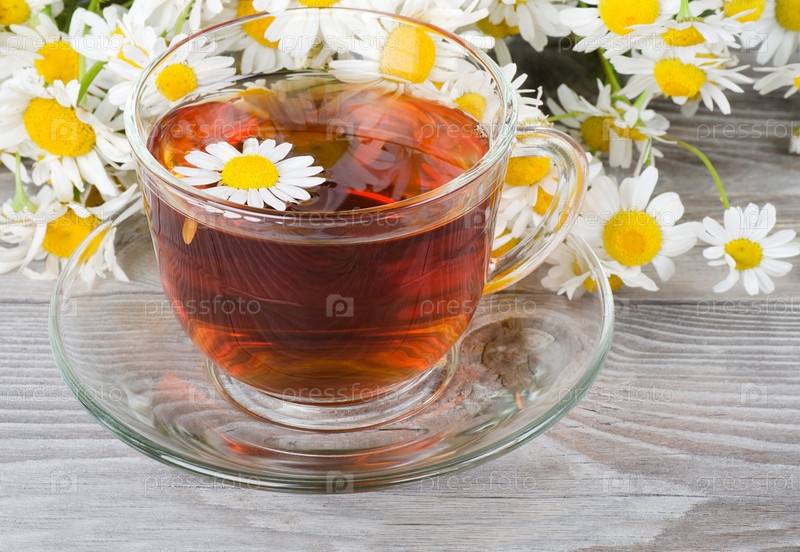 Кружка с чаем и с ромашкой
