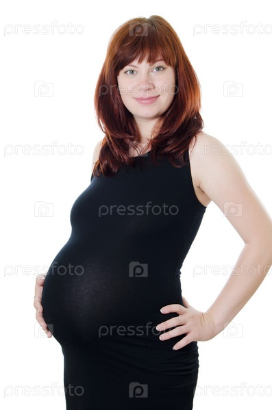 Беременная женщина на белом фоне