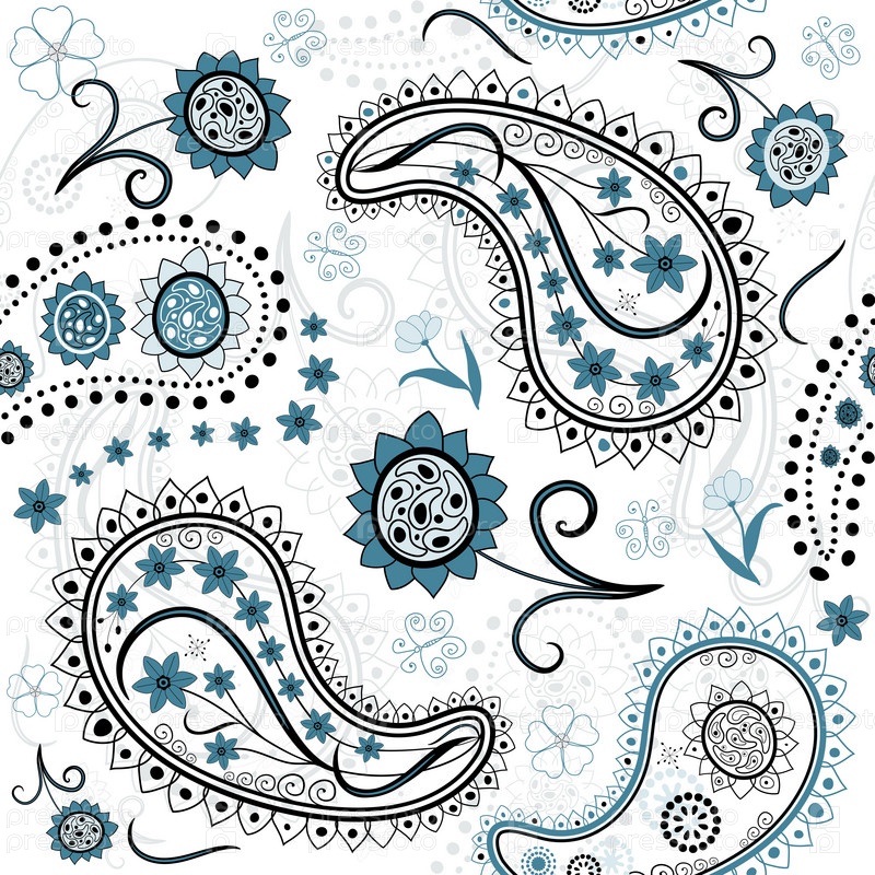 Черно-голубой узор "турецкий огурец" на белом фоне