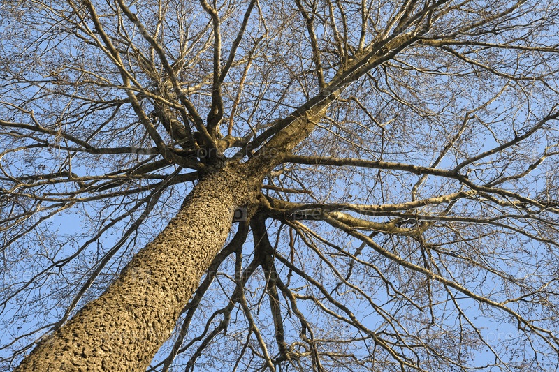 Дерево на фоне ясного неба, вид снизу