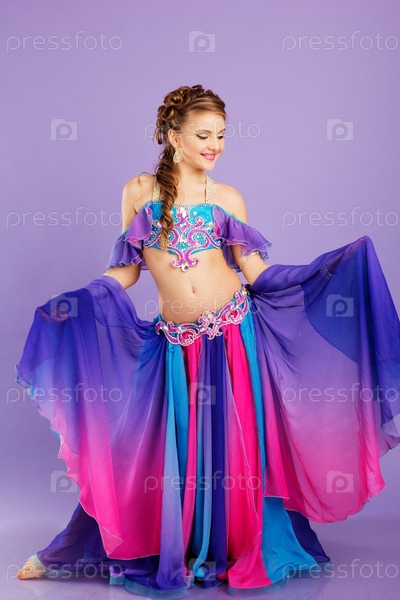 Красивая танцовщица в фиолетовом костюме