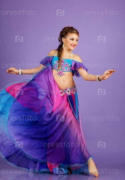 Красивая танцовщица в фиолетовом костюме