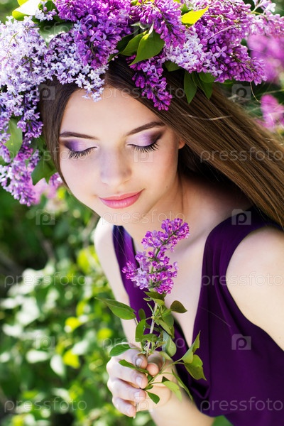 Красивая девушка с цветами сирени