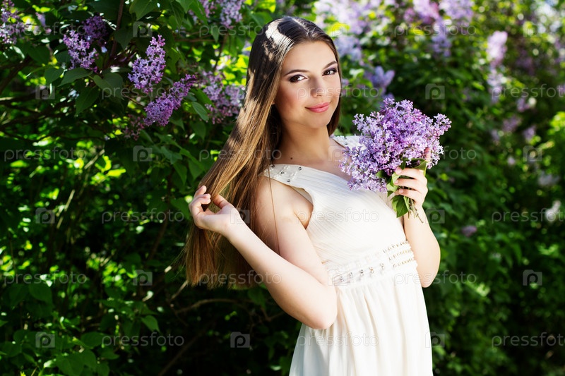 Красивая девушка с цветами сирени