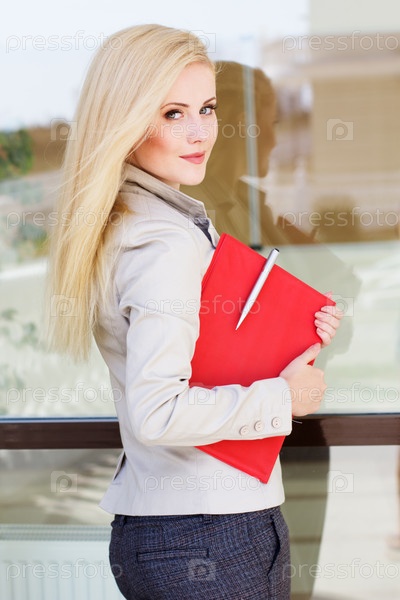 Красивая девушка с красной папкой