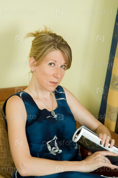 Женщина с журналом в руках на кресле