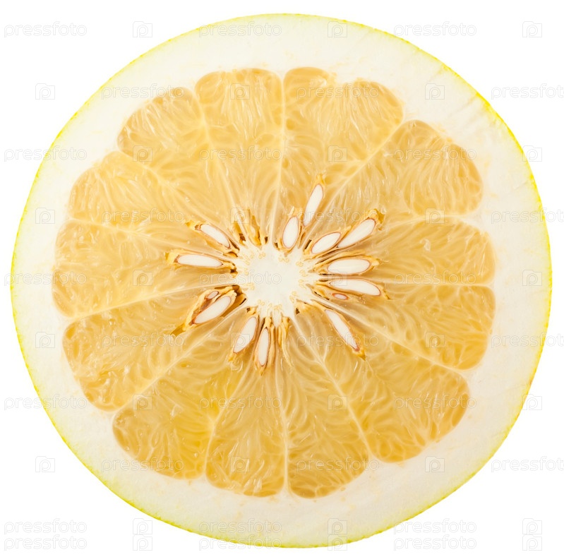 Половинка фрукта "помело" на белом фоне