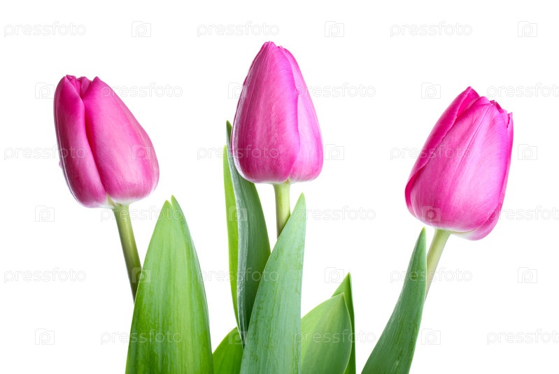 Три розовых тюльпана на белом фоне