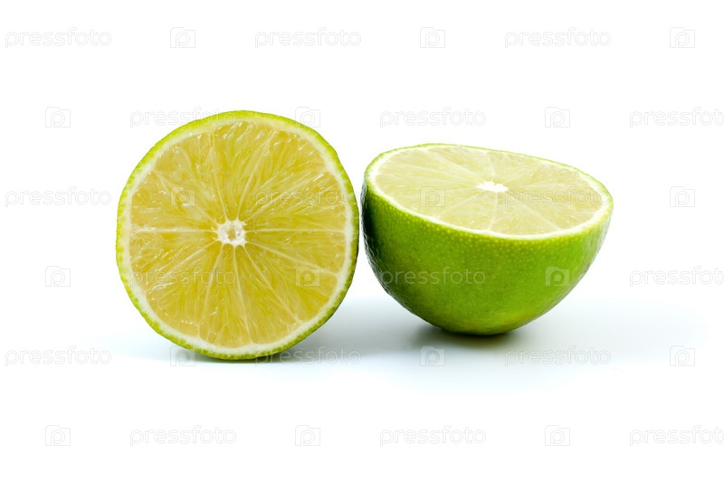 Разрезанный напополам лайм на белом фоне
