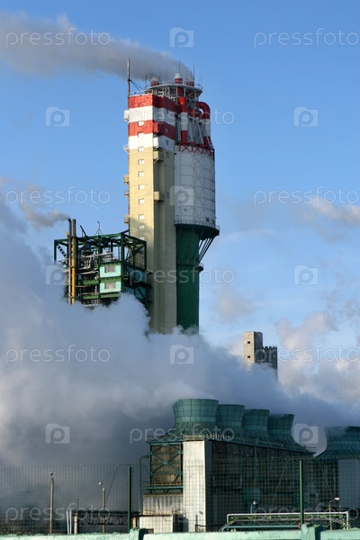 Трубы завода с густыми облаками ядовитого дыма