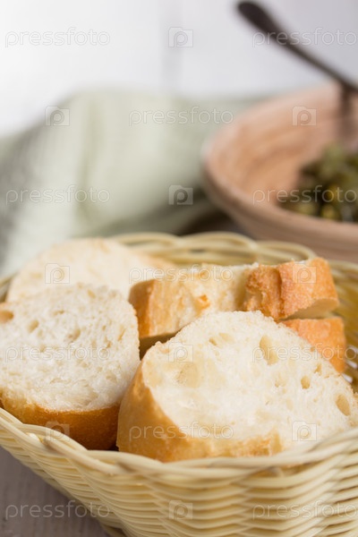 Свежий белый хлеб в корзине