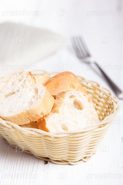 Свежий белый хлеб в корзине