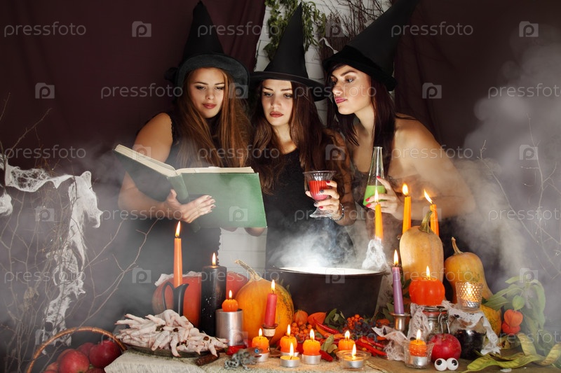 Ведьмы смотрят в книгу магических рецептов