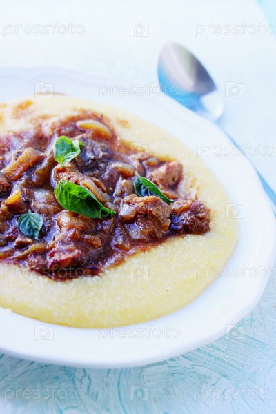 Полента - кукурузная каша с соусом из телятины
