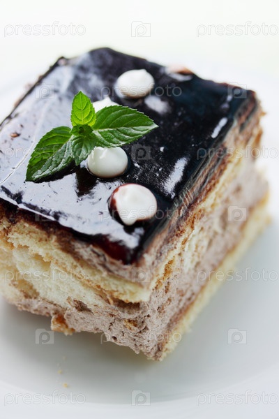 Кусок торта с кремом и шоколадной глазурью